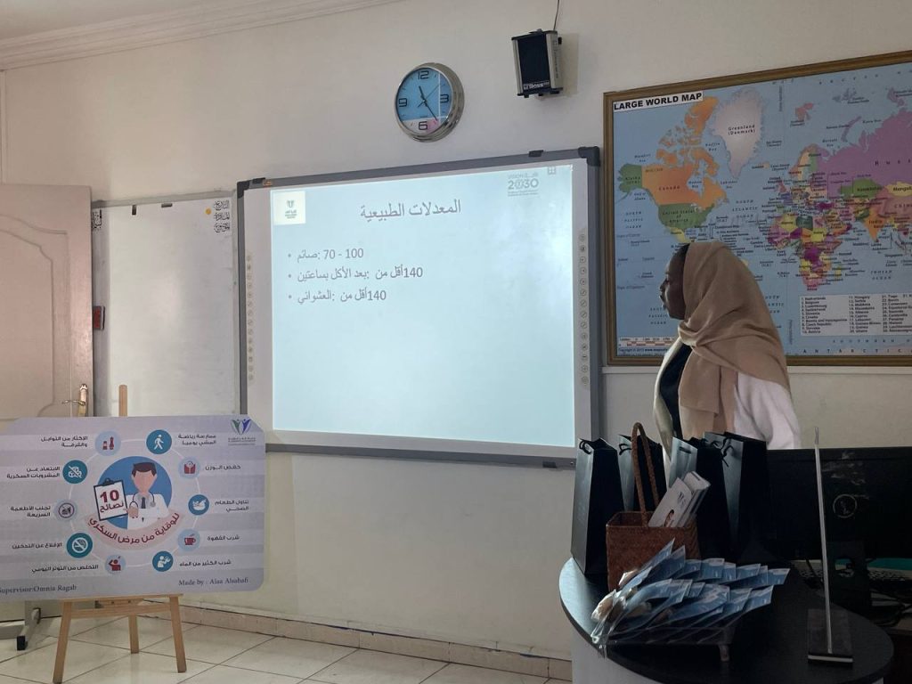 وتضمنت المشاركة تقديم محاضرة توعوية حول مرض السكري، تناولت التعريف بالمرض، وأسبابه، وطرق الوقاية منه، وأهمية الكشف المبكر، إضافة إلى التوعية بأسلوب الحياة الصحي ودوره في الوقاية من المضاعفات.