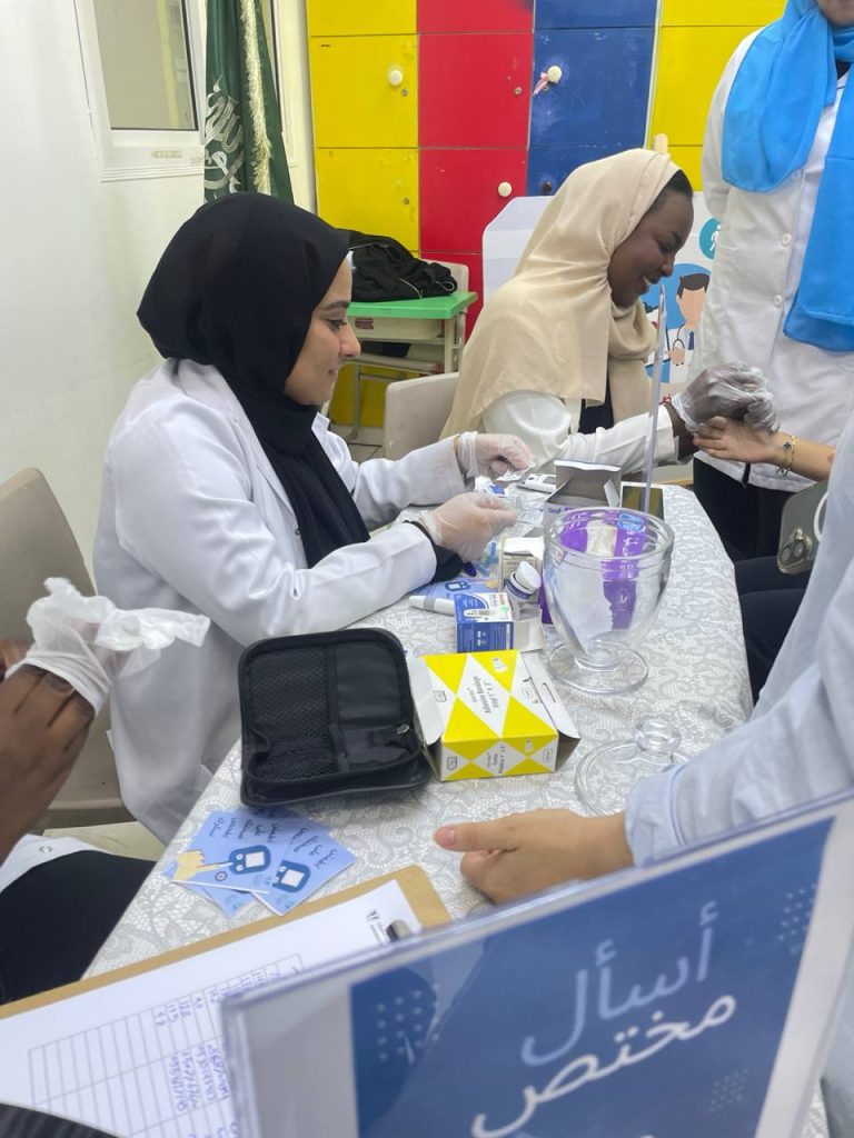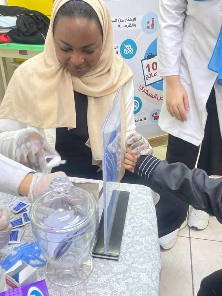 كما شملت الفعالية تقديم خدمة قياس مستوى السكر في الدم لمنسوبي المدرسة، بإشراف كوادر وطلاب الكلية، وذلك في إطار التطبيق العملي ونشر الثقافة الصحية.